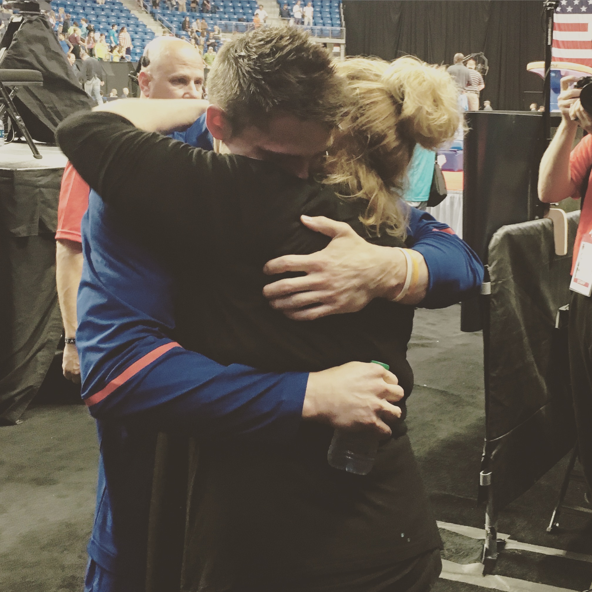 Brooks has been waiting for this chance for, well, his entire life. He finally put it all together- training, focus, teamwork, family, and his gymnastics. No matter what place he finished tonight, getting here for him is truly the prize. May he put together the best six routines of his life, and no matter the ranking, leave this sport at the top of his game. As I talked about in an earlier blog, my admiration for Chris' push through life is amazing. This pic is one of the first hug he gave his mom when they saw each other, after finding out that he made the team. I was lucky enough to capture this moment for him, and wow, tears. Mom said, "You did it!" and Chris responded, "No, we did it, Mom!"
