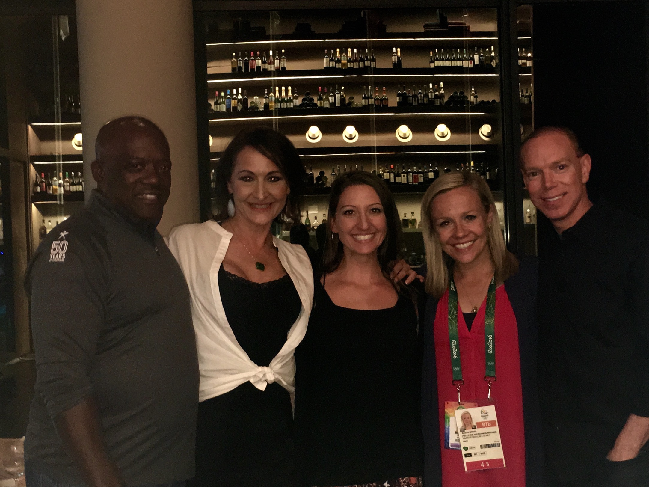 - Finally got to have a real meal! Food, on real plates, safe to eat… yes!!! Grand Hyatt on the beach (clearly WAY different from where we are staying) was amazing. The company was equally wonderful! I don’t get a chance to catch up with Amanda often, she and I are essentially parallel in life now.. owning businesses, having three kids, and trying to balance it all! Kelly is the brain behind the design of ALL of our leotards, and throughout the years of our friendship, she amazes me more each year. Her design is so thought out, planned, and with a story for the pride of the US, and to make our athletes look the absolute best! Ron Galimore, of course, is the heart and soul behind USA Gymnastics.