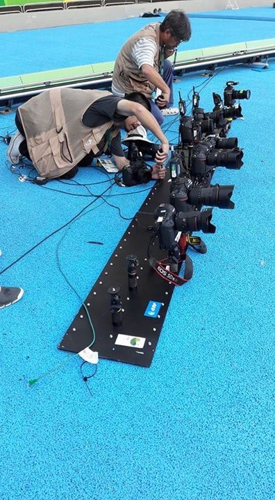 - My friend Kathy had a great vantage point last night, and got a few pics of the cameras that were to be placed on the runners INSANE! They have them mounted, because (obviously) the camera folks cannot stand at the end of the run. Cool!
