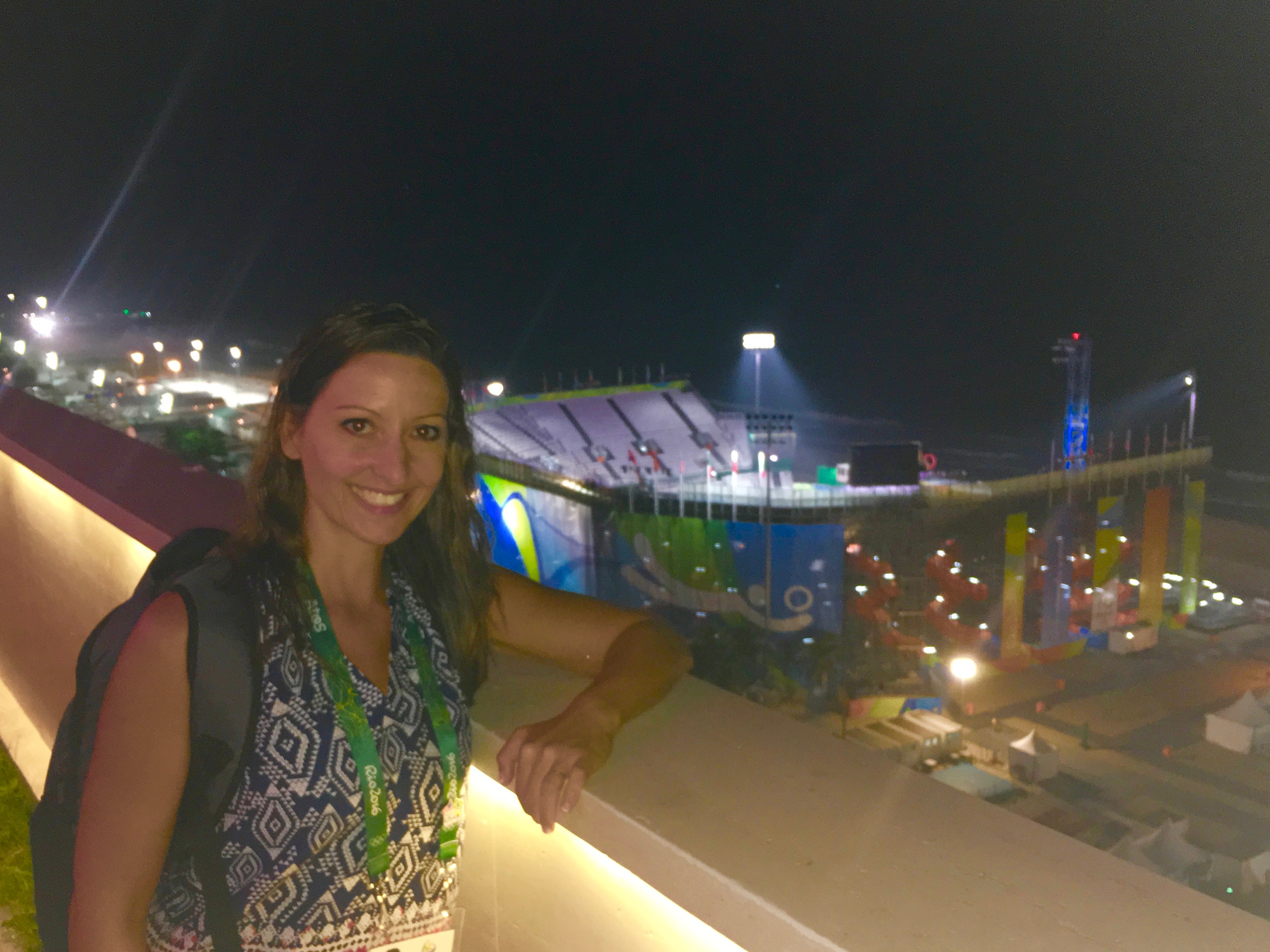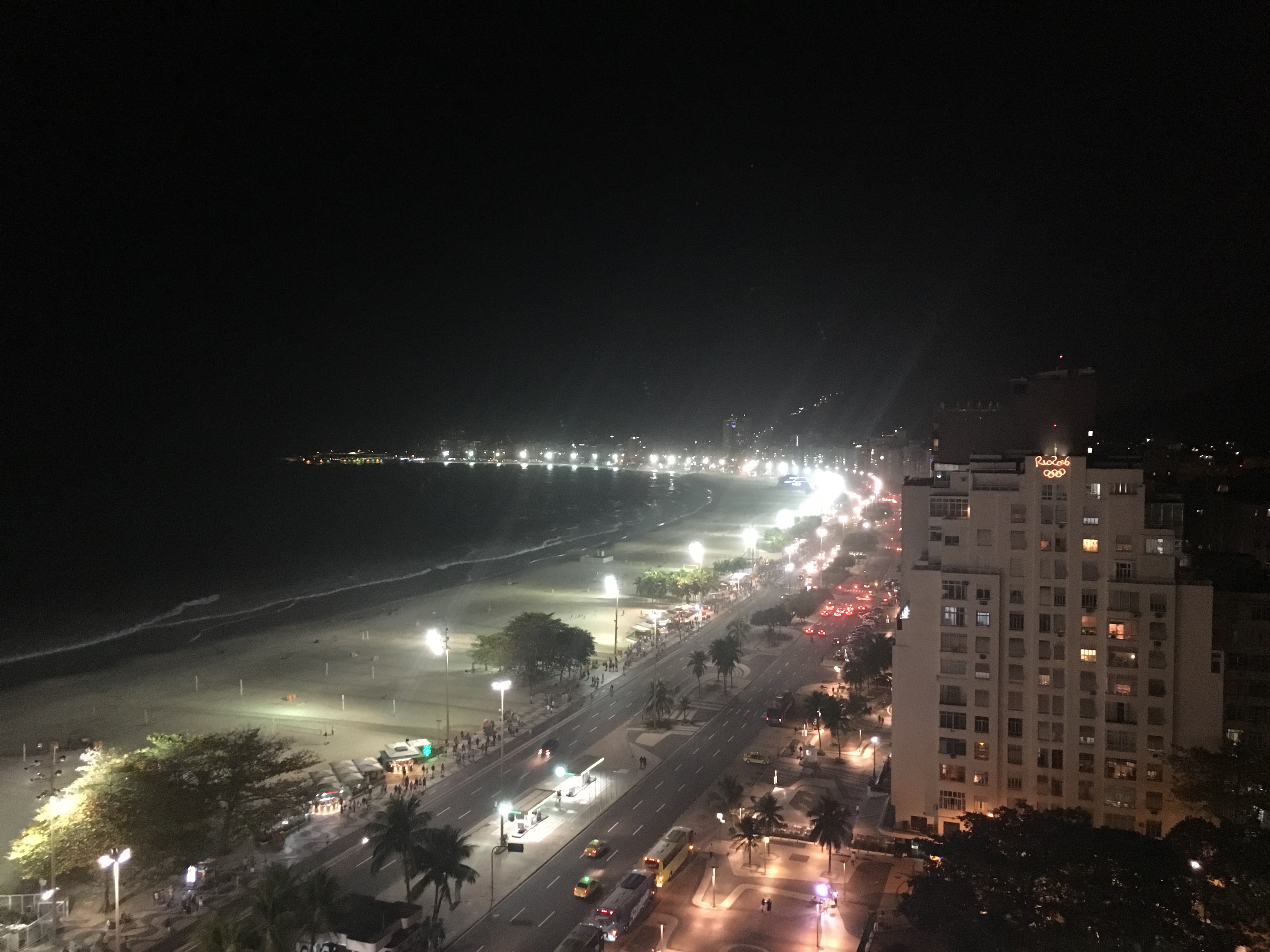 The party was an amazing experience as we were welcomed like royalty from Nike representatives around the world. Their hospitality was amazing, their displays of uniforms and technology was informational, and the location was breathtaking. The picture shows our view from the balcony of Copacabana Beach and the stadium for Olympic Beach Volleyball.