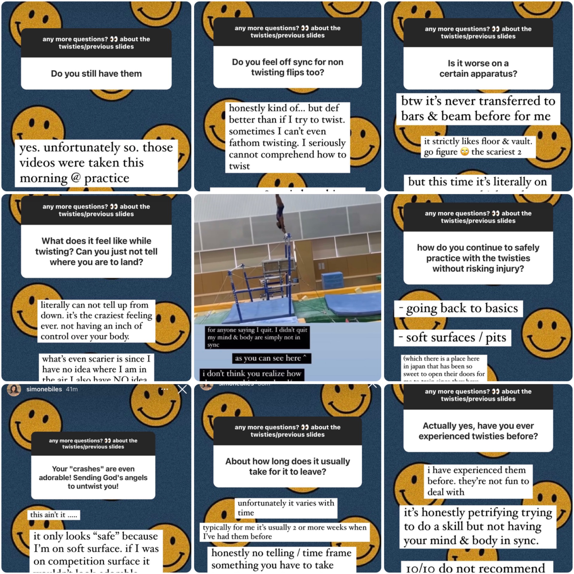 (See below, clips from Simone Biles' Instagram post and Q and A session)